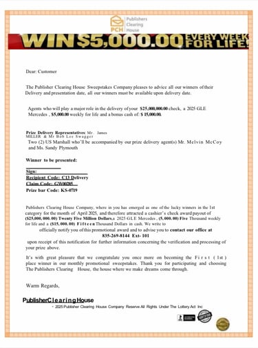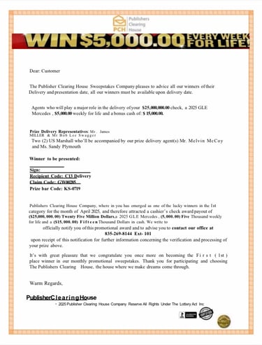 All legitimate communication will only be sent through official email channels (BobbyLee@pchbobbyLee.com) or through physical mail to the home address we have on file for you.